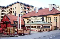 The inn, which was very conveniently positioned close to the Roslagstull customs and the popular health spring Surbrunnen, quickly expanded into one of the most fashionable in Stockholm, frequented by customers of all social classes.[5] It also offered the biggest dancing parlor in Stockholm, where balls were held by the aristocracy: in 1745, Frederick I of Sweden participated in one of the balls, where he was introduced to a replacement for Hedvig Taube.[6]