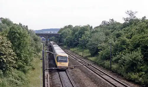 Advanced Passenger Train southbound approaching the site of the station in 1986