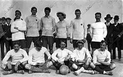Football was introduced to Madrid by the professors and students of the Institución Libre de Enseñanza. They included several Oxbridge graduates. In 1897 they founded Football Sky, a club that played on Sunday mornings in Moncloa. In 1900 a split within this club saw the emergence of a new club that would later become Madrid Foot-Ball Club and a new split in 1901 resulted in "Club Español de Madrid".[2] However, the club's lifespan was cut short when it was forced to cancel its activities in the summer of 1903, remaining unknown if due to disagreements, slipt or members leaving to form other clubs. The club was refounded a few months later, in October 1903, by several players who had left Madrid FC to form their own club, among whom were the Giralt brothers (Mario, José and Armando) and Antonio Neyra, who become the first team captain of the club after its revival.[3]