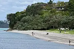 The area was subdivided in September 1923, advertised as Cockle Bay Estate, a seaside resort. The new residents of Cockle Bay formed a close-knit community, separate from the nearby township of Howick. During the 1920s, the Chinese community in New Zealand organised large-scale picnics, that were held at Cockle Bay.[7] Cockle Bay was divided between the Howick Town District and the Manukau County. After numerous disputes over maintenance costs, the entirely of Cockle Bay was incorporated into Howick in 1931.[14] In 1934, a nine-hole golf course was established at Cockle Bay,[15] moving to Musick Point in 1954.[16]