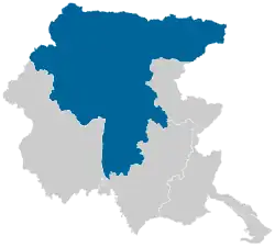 The Codroipo-district was composed by 86 comuni: Amaro, Ampezzo, Arba, Arta Terme, Artegna, Basiliano, Bertiolo, Bordano, Buja, Camino al Tagliamento, Cassacco, Castelnovo del Friuli, Cavasso Nuovo, Cavazzo Carnico, Cercivento, Chiusaforte, Clauzetto, Codroipo, Colloredo di Monte Albano, Comeglians, Coseano, Dignano, Dogna, Enemonzo, Fagagna, Fanna, Flaibano, Forgaria nel Friuli, Forni Avoltri, Forni di Sopra, Forni di Sotto, Frisanco, Gemona del Friuli, Lauco, Lestizza, Ligosullo, Magnano in Riviera, Majano, Malborghetto Valbruna, Martignacco, Mereto di Tomba, Moggio Udinese, Montenars, Moruzzo, Osoppo, Ovaro, Pagnacco, Paluzza, Pasian di Prato, Paularo, Pinzano al Tagliamento, Pontebba, Povoletto, Prato Carnico, Preone, Ragogna, Ravascletto, Raveo, Reana del Rojale, Resiutta, Rigolato, Rive d'Arcano, San Daniele del Friuli, San Vito di Fagagna, Sappada, Sauris, Sedegliano, Sequals, Socchieve, Sutrio, Tarcento, Tarvisio, Tolmezzo, Tramonti di Sopra, Tramonti di Sotto, Trasaghis, Travesio, Treppo Carnico, Treppo Grande, Tricesimo, Venzone, Verzegnis, Villa Santina, Vito d'Asio and Zuglio.