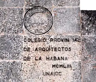 7. ^ "COLEGIO NACIONAL DE ARQUITECTOS DE CUBA". Retrieved October 1, 2018.