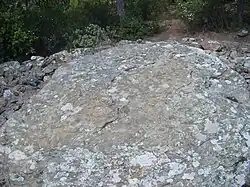 It can be reached on foot via a number of unmarked paths, as the megalith stands in the middle of a Mediterranean-type forest.[1] The nearest road, a narrow départementale, runs several hundred meters to the east, and a forest track 200 m to the west. Several dolmens can be found nearby, including the dolmen of les Rieres (1.5 km to the north), the dolmen of la Creu de la Llosa, those located in the communes of Bouleternère and Saint-Michel-de-Llotes, and a cup mark that may be a dolmen remnant just 150 m away, on the same col.[3]
