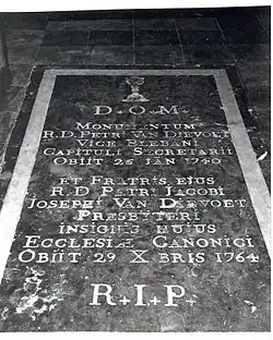 - Peter Van Dievoet (1697–1740), vice-pleban and secretary to the chapter of Anderlecht, and his brother, canon Pierre-Jacques-Joseph van Dievoet (1706–1764);