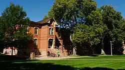 Among the institutions which donated matching funds was the local Grange, which was heavily involved in the early establishment of the university. As part of this effort, in the spring of 1874, Grange No. 6 held a picnic and planting event at the corner of College Avenue and West Laurel Street, and later plowed and seeded 20 acres (80,000 m2) of wheat on a nearby field. Within several months, the university's first building, a 16-foot (4.9 m)-by-24-foot red brick building nicknamed the "Claim Shanty" was finished, providing the first tangible presence of the institution in Fort Collins.[12]