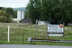 Columbia County is home to many local farms supplying the area with fresh meat, eggs, herbs, and produce, including Holmquest, Ronnybrook, Fix Brothers Fruit Farm, Eger Brothers, Hover Farms, Marsh Meadow Farm, Schober Farm, Millerhurst, Ooms Farm, Churchtown Dairy, Pigasso, Common Hands Farm, Darlin' Doe, Blue Star Farm, Green Mead Farm, Little Ghent Farm, and Ironwood Farm.[11] Other farms include the large, well-known Hawthorne Valley Farm which includes a farm store and training programs, the biodynamic Roxbury Farm, and FarmOn! at Empire Farm, also a teaching farm.