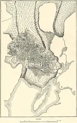 An illustration of Columbia Glacier in 1910, with the District of Columbia overlaid for scale comparisons
