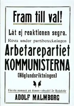 - ^ Sveriges kommunistiska parti in Nordisk familjebok, vol. 38 (1926)