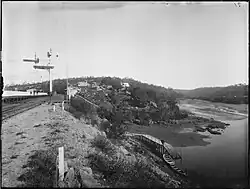 The first Como station opened on 26 December 1885 immediately south of the Georges River. When the original iron lattice girder bridge was replaced, a new station was built about one kilometre to the south opening on 27 November 1972.[3][4][5]