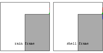 Similarly, standing on a non-rotating planet (and on earth for practical purposes) observers experience an upward proper-acceleration due to the normal force exerted by the earth on the bottom of their shoes. This cancels the downward geometric acceleration due to the choice of coordinate system (a so-called shell-frame[4]). That downward acceleration becomes coordinate if they inadvertently step off a cliff into a zero proper-acceleration (geodesic or rain-frame) trajectory.