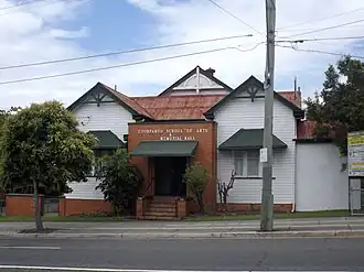 The Coorparoo School of Arts and RSL Memorial Hall is a single storey timber building, with concrete stumps and a corrugated iron roof, located on the corner of Cavendish Road and Halstead Street, Coorparoo.[1]