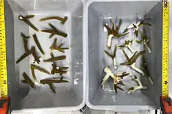 Coral diseases also impact aquarists and coral laboratory settings. These diseases, however, are seemingly different from the diseases in the wild. Studies have found that some diseases impact aquarium corals, but are not an issue in the wild, and vice versa.[1][4] For example, red bug parasites are unique to aquariums, with no wild counterparts having been documented yet. There are also some parasitic flatworm species that infest aquarist's tanks, but are not seen in the wild. These differences in diseases in the wild and aquariums is thought to be because of the varying conditions in the two environments, including water quality and captive coral breeding.[4]