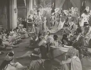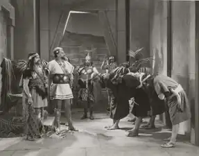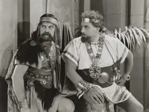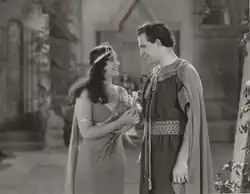 One major difference from the play is that, while the stage version's dancing girls were fully clothed, the film version's wore little.[14] The film was an early sound film, and actors retained habits from silent films like expressive gestures. Corianton: A Story of Unholy Love, directed by Wilfrid North, released in 1931 as one of the first commercially produced Mormon films.[15][note 1] The film was produced in the Metropolitan Sound Studies in Fort Lee, New Jersey, during the winter months of 1930. The sets, with clear Art Deco influence, were designed by Joseph Physioc, a Broadway stage designer with an interest in archeology. Edgar Stillman Kelley wrote the score, with assistance from Carl Edouarde. LDS Church member Dal Clawson was the director of photography.[16] The film was co-produced by self-help author Napoleon Hill who was accused of malfeasance by the investors. Gizmodo writer Matt Novak described Hill as a "conman" whose methods of fundraising "skirt[ed] the law";[17] Mormon film historian Randy Astle wrote that Hill had a "habit of overpromising".[18] Hill and the Parks encouraged people in Idaho and Utah to invest in their film, but had difficulty procuring necessary funds for the ambitious project after the stock market crash in 1929. After the film's production, money from Corianton Corporation moved "freely into one of [Hill's] separate enterprises".[19]