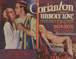 Corianton: A Story of Unholy Love is a 1931 American drama film based on the story of Corianton, the son of the prophet Alma in the Book of Mormon. Corianton appears only briefly in three passages in the Book of Mormon.[1][2][3] However, as scholars Randy Astle and Gideon Burton point out, his story is one of the only stories in the Book of Mormon "with any sex in it", which has made it a popular subject of Book of Mormon-themed fiction and drama for more than a century.[4]