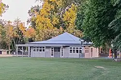 A tea kiosk in "modern renaissance style" was constructed in November 1928, designed by local architect Harold Davies. Funds were set aside by council to the tune of £150 from the Municipal Theatre account. The total cost ended up near £1225. The rooftop of the building was able to be used as a band stand. The first tenant of the building was one Mrs A. Kirby. According to Kirby the building "was not even cracked by the quake", referring to how it faired in the 1931 Hawke's Bay earthquake. A fire closed the tea rooms in 1957. The Hawke's Bay Playcentre Association leased the building from 1970, removing the bandstand and adding on a playground.[9]