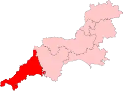 The seat consisted of the Westminster Parliament constituencies (on their 1983 boundaries) of Falmouth and Camborne, North Cornwall, Plymouth Devonport, Plymouth Drake, St Ives, South East Cornwall and Truro.[1]