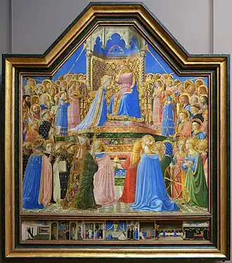 The Coronation of the Virgin is a painting by the Italian early Renaissance master Fra Angelico, executed around 1434–1435 in Fiesole (Florence). It is now in the Musée du Louvre of Paris, France. The artist executed another Coronation of the Virgin (c. 1432), now in the Uffizi in Florence.