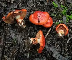 English botanist Miles Joseph Berkeley described this species as a "blood red" mushroom, "clothed with a thick gelatinous coat" in 1845, from the writings and specimens of James Drummond, from the vicinity of the Swan River Colony in Western Australia.[2] The species name is derived from the Ancient Greek word erythros "red". John Burton Cleland described Cortinarius ruber in 1928 from a collection in Kinchina, South Australia. Later analysis indicated it was the same species as C. erythraeus.[1]