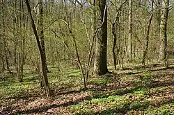The species inhabits forests and thickets of Carpinion betuli (less often riparian) as well as scrublands, and it is sometimes present in robin forests, parks and cemeteries[5] in suburban secondary forests with maples, ash and elm trees.[4] It also invades xerothermic grasslands adjacent to forests and thickets, wet meadows[5] and even mowed lawns.[4] The species conspicuously avoids beech forests[4][5] (except on the Apennine Peninsula, where it grows in beech forests at elevations of 800 to 1,500 meters above sea level)[4] and forests with coniferous species.[5] In the classification of plant communities of Central Europe, the species is characteristic of O. Fagetalia.[8] Throughout its range, however, it grows in a wide variety of forest communities.[4]
