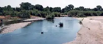 Cottonwood Creek is a major stream and tributary of the Sacramento River in Northern California. About 68 miles (109 km) long measured to its uppermost tributaries, the creek drains a large rural area bounded by the crest of the Coast Ranges, traversing the northwestern Sacramento Valley before emptying into the Sacramento River near the town of Cottonwood. It defines the boundary of Shasta and Tehama counties for its entire length. Because Cottonwood Creek is the largest undammed tributary of the Sacramento River, it is known for its Chinook salmon and steelhead runs.[2]