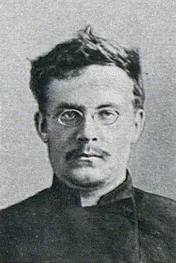 The Council of District Dumas in turn elected a 18-member Bureau to function as its executive organ.[7][8][9] Nine of the eighteen Bureau members were named as head of departments.[7] Vladimirsky was elected as the chairman of both the Council of District Dumas and its Bureau.[7][9][3] Obukh was named as the Head of the Social Security Department.[9][3] The chairman of the Petrovsky District Administration, Yefim Afonin, was named as Head of the Financial Department.[3] The physician and recent commissar of the City Duma, Nikolai Semashko was named Head of the Health Department.[9][7][3] Aleksandr Piskunov was named as Head of the Public Education Department.[3] Anna Weisman was appointed as Head of the Fuel Department.[3] The chairman of the Simonovsky District Administration Nikolai Goncharov was named Head of the Departments for Refugees, City Lands and Rental Units.[3][10] The engineer Pavel Mostovenko was named Head of the Department of City Enterprises.[3] The chairman of the Presnensky District Administration and former secretary of the Moscow Committee of the Bolshevik Party Vasily Likhachev (Blas) was named Head of the Affairs of the Former 8th Department (in charge of fire brigades, police and military barracks).[3][11] The chairman of the Kaluzhsky District Administration and former member of the Municipal Commission of the Moscow Committee of the Bolshevik Party Josef Fradkin (Boris Volin) was named Head of the Department for District Administrations.[3][7]