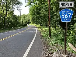 County Route 567 (CR 567) is a county highway in the U.S. state of New Jersey. The highway extends 10.02 miles (16.13 km) from Amwell Road (CR 514) in Hillsborough Township to Union Avenue (Route 28) in Raritan Borough.