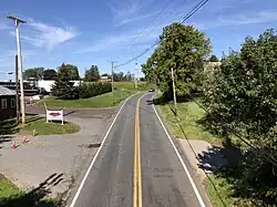 The route crosses Route 12 and continues through rural areas of farms, woods, and homes, entering Franklin Township. Here, the road runs through open farmland and comes to the CR 616 intersection, where CR 579 turns northwest into the residential community of Quakertown. The road passes more rural residences and farms before turning north at the CR 615 junction and intersecting CR 513 in the community of Pittstown. CR 579 has a brief concurrency with CR 513, forming the border between Alexandria Township to the west and Franklin Township to the east. CR 579 splits from CR 513 by heading northwest onto Pittstown-Bloomsbury Road. The road continues along the border between Alexandria Township to the southwest and Union Township to the northeast through farmland, woodland, and some housing areas, reaching an intersection with CR 625. The road enters more forested surroundings with some homes prior to the CR 614 intersection. A short distance past CR 614, the route becomes the border between Alexandria Township to the southwest and Bethlehem Township to the northeast, passing some farms and development before heading into forested areas of Musconetcong Mountain. The road winds across the mountain and fully enters Bethlehem Township. Upon passing over Norfolk Southern's Lehigh Line, CR 579 continues into Bloomsbury and becomes Church Street. In Bloomsbury, the road passes through residential areas and crosses Norfolk Southern's Central Running Track line at-grade. After crossing the Musconetcong River into Greenwich Township, Warren County, CR 579 immediately reaches its northern terminus at Route 173.[1][2]