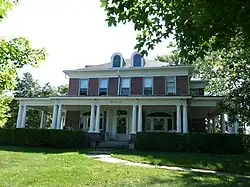 Court Street was developed as a major artery from the Des Moines River to Sixth Street, which was Ottumwa's original city limits, where it made a slight turn to the north and headed up a bluff and into the countryside above the river valley. It is possible that it is the road established by the Iowa Territorial Legislature in 1844 that extended from the southern Davis County border to the northern Wapello County border and connected the two county seats.[2] Later it was signed as U.S. Highway 63. The oldest houses in the district were built between 1865 and 1875. The first electric streetcar began operating on Court Street in 1889. The street was paved with bricks in 1890 and 1891. Both projects led to increased development of the area between 1890 and 1915. From this period until 1942, a centralized steam heat system was available in the city and the main pipes were located under Court Street. Because of this, the street was never covered with snow or ice during the winter and people could always climb to the top of the bluff when other streets were impassable.[2] During the World War II years, many of the large homes were divided into multi-family dwellings. That process started to be reversed in the late 20th century when historic preservation took root in Ottumwa.[2]: 30
