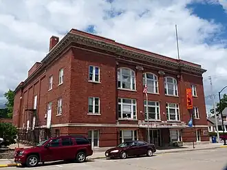 - The 1911-12 Richland Center City Auditorium at 812 N. Central Ave is a 3-story municipal building designed by Percy Bentley of La Crosse. Before its construction, Wisconsin municipalities were forbade to operate income-generating properties, but the Federated Women's League, including the Richland Center chapter, lobbied the State Legislature to revoke that statute. With that statute gone, the local women spurred the city, and Richland Center was the first city in Wisconsin to take advantage of the rule change. Offices of city officials are in the front of the building, the basement holds a women's club room, the third floor holds meeting rooms and a rec room, and the rest of the building holds a 900-seat auditorium. In the first year, the auditorium hosted 51 events, from which the city made $2000.[20][21]