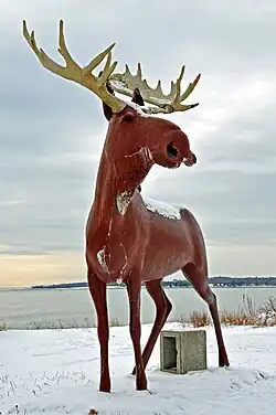 Besides being an ocean community, Cow Bay also has 3 lakes, Bissett Lake, Cow Bay Lake, and Car Wash Lake. The Cow Bay River cuts through the centre of the community which consists of a number of small waterfalls before it enters Cow Bay Lake. Cow Bay is also famous for its jogging/walking/bicycle trails, the Salt Marsh Trail and Shearwater Flyer trail which follow an abandoned rail line known as the Dartmouth Eastern Railway. It is also unique in the Halifax region because horses are a common sight in the community because of the significant number of farms. Daily wildlife sightings in the community are pheasants, deer, bobcats, rabbits, bear, plus wide and varied species of birds. Cow Bay's motto is "Cow Bay Attracting Visitors Since 1773". In 1959 a large concrete moose statue by Winston Bronnum was constructed and still remains a landmark.[4] Cow Bay is also famous for the annual 25 km "Moose Run", part of a running series in Nova Scotia which has had a growing number of participants because of the scenic views the run offers.