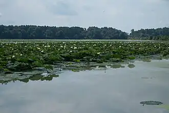 Crab Orchard National Wildlife Refuge is a 43,890 acre (180 km2) National Wildlife Refuge primarily in southwestern Williamson County, but with small extensions into adjacent eastern Jackson and northeastern Union counties of southern Illinois, in the United States. Its land and water contain a wide diversity of flora and fauna. It centers on Crab Orchard Lake. Major habitat types on the refuge include hardwood forest, agricultural land, grazing units, brushland, wetlands, and lakes. Other major bodies of water on the refuge are Devil's Kitchen Lake and Little Grassy Lake.