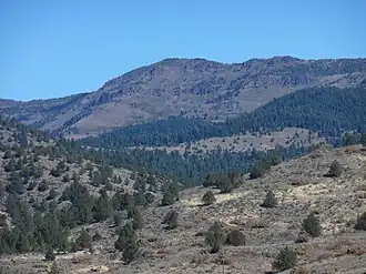Crane Mountain is a peak near the northern end of the Warner Mountains in south-central Oregon. It is in the northwest corner of the basin and range country of the western United States. The mountain is located in the Fremont–Winema National Forest, approximately 5 miles (8.0 km) southeast of Lakeview. The summit of Crane Mountain is at 8,451 feet (2,576 m). The summit, which has a topographic prominence of 2,336 feet (712 m), is the highest point in Lake County, Oregon.[5][6][7][8]