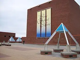 Crane consists of approximately 630 undergraduate and 30 graduate students and a faculty of 70 teachers and professional staff in a college of 2500 students[1] and 250 faculty. Crane is housed in the Julia E. Crane Music Center on the north side of the campus. The complex consists of four buildings: two classroom buildings (Bishop and Schuette Halls), three concert areas (the Helen M. Hosmer Concert Hall, 1290 seats, the Sara M. Snell Music Theater, 452 seats, and the Ralph Wakefield Lecture and Recital Hall located within Bishop Hall, 130 seats) as well as extensive supporting areas. Located within Schuette Hall is the Crane Music Library, which includes an extensive collection of literature, scores, and recordings. Located within the music library is a MIDI Computer Lab. All four of Crane's buildings are connected underground.
