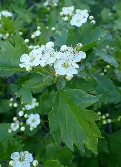 Crataegus nigra, the Hungarian thorn,[2] Hungarian hawthorn or black hawthorn, is a black-fruited species of hawthorn native to the western balkan and the Pannonian Basin, spanning from Slovakia to Albania. The fruit, which is up to 10 mm across, can be consumed fresh or cooked.