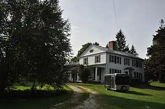 The Cream Hill Agricultural School property is located on 400 acres (160 ha) in northern Cornwall, a rural community in the northwestern hills of Connecticut. The main farmstead is found on the west side of Cream Hill Road, north of its junction with Wadsworth Road. In additions to more modern farm trappings, much of its historic educational complex survives. This includes a c. 1770 2+12-story farmhouse, to which a 1+12-story ell was added about 1840. A second wing was added in 1845, specifically for use as classroom space. This two-story flat-roofed structure was enlarged in 1850 with a similar section topped by a square turret. Standing west of this complex are sheds and barns of 19th-century vintage.[2]