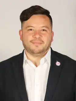 Cristóbal Andrade León[2] (born in 1989) is a Chilean teacher who was elected as a member of the Chilean Constitutional Convention.[3][4][5] Andrade is noted for his trademark blue Tyrannosaurus rex costume, which he wears to sessions of the Constitutional Convention.[6] Andrade wears the costume in order to showcase his independence from traditional Chilean politicians.[6]