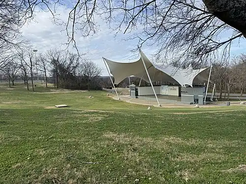 The City of Brentwood purchased the acreage for Crockett Park in 1991.[5] The first phase of the park, building out fields and parking facilities, was completed in 1993.[5] The original amphitheater and spectator hill was completed in 1993, which would be remodeled in 2000 thanks to a donation by country artist Eddy Arnold.[5] A bikeway that connected local elementary schools and added concrete trails to the park was completed in 1996.[5] The final phase of the initial park plan was completed in 1997, finalizing construction of baseball fields, concession stands, pavilions, tennis courts, and administrative buildings.[5]