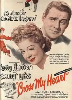 Cross My Heart is a 1946 American comedy film directed by John Berry and starring Betty Hutton, Sonny Tufts and Rhys Williams. It was a remake of the 1937 film True Confession, which was itself based on the 1934 French play Mon Crime written by Georges Berr and Louis Verneuil.[1]