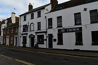 The Crown Hotel is a hotel and pub in Poole, Dorset, England. It is a traditional pub/inn with a cream painted exterior and red placard.
