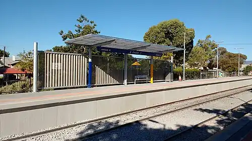 Whilst it had been previously proposed that as part of an upgrade to South Road, the station would be elevated and potentially relocated to the east as part of a grade separation project, the final design adopted a shorter rail overpass option allowing the station to remain in its current location.[3][4]