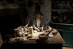 Diorama of a cunning woman in the Museum of Witchcraft and Magic