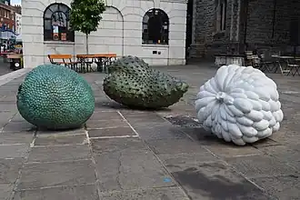 Custard Apple (Annonaceae), Breadfruit (Moraceae) and Soursop (Annonaceae) are three sculptures by Veronica Ryan that stand on Narrow Way, near St Augustine's Tower in Hackney, London. They were commissioned as a memorial to the Windrush generation of British African-Caribbean people who immigrated to the United Kingdom in the wake of World War II.[1] They are the first permanent public sculptures by a black female artist in the United Kingdom.[2]