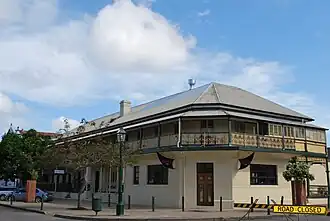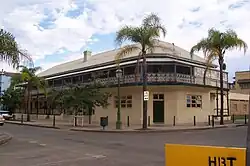 The Custom House Hotel is a two storeyed brick building on the corner of Wharf and Richmond Streets, Maryborough. A two-storeyed residential wing extends from the rear of the hotel.[1]