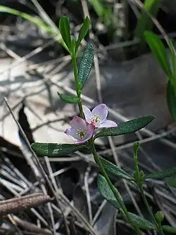 Cyanothamnus polygalifolius, commonly known as dwarf boronia,[2] milkwort-leaved boronia[3] or milkwort boronia,[4] is a plant in the citrus family Rutaceae and is endemic to eastern Australia. It is a low-lying shrub with simple leaves and white or pink flowers arranged singly or in groups of up to three in leaf axils.