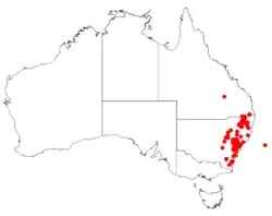 This boronia grows in heath and forest and in rocky slopes and ridges between the Border Ranges in Queensland and Wadbilliga Mountain in southern New South Wales.[2][3]