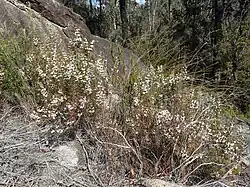 Cyanothamnus quadrangulus, commonly known as narrow-leaved boronia,[2] is a plant in the citrus family, Rutaceae and is endemic to eastern Australia. It is an erect shrub with four-angled branches, bipinnate leaves and white, sometimes pale pink, four-petalled flowers.