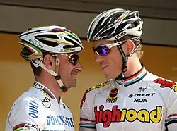 Paolo Bettini (left) and Kim Kirchen (right), rivals and pre-race favorites