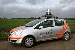 Cyclomedia is a Dutch company specialising in the large-scale and systematic visualisation of environments based on 360° panoramic photographs (Cycloramas). Using specialised technology, large public areas are photographed and stored in an online database. Overlapping panoramic images are captured at 5-meter intervals from public roads at street level, with the camera system mounted on a moving car.[1]