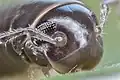C. caeruleocinctus is a larger millipede being up to 30 mm long when fully grown. It has bean shaped eyes. Its telson (the final segment of its body) is smooth and flat instead of projecting outward.[9]