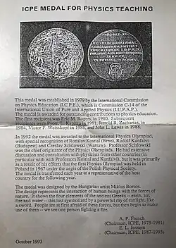 | Awards | medal of the International Conference on Physics Education (ICPE) |